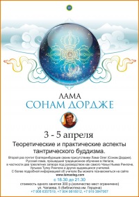 Семинар Сонама Доржде (Ламы Олега) в Екатеринбурге «Теоретические и практические аспекты тантрического буддизма» пройдет с 3 по 5 апреля.