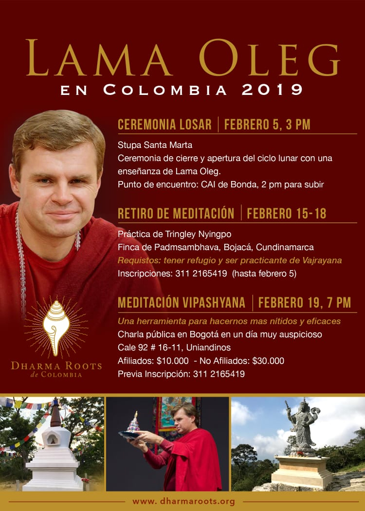 Сообщаем о предстоящих активностях нашего Драгоценного учителя, Ламы Олега, в Колумбии.
