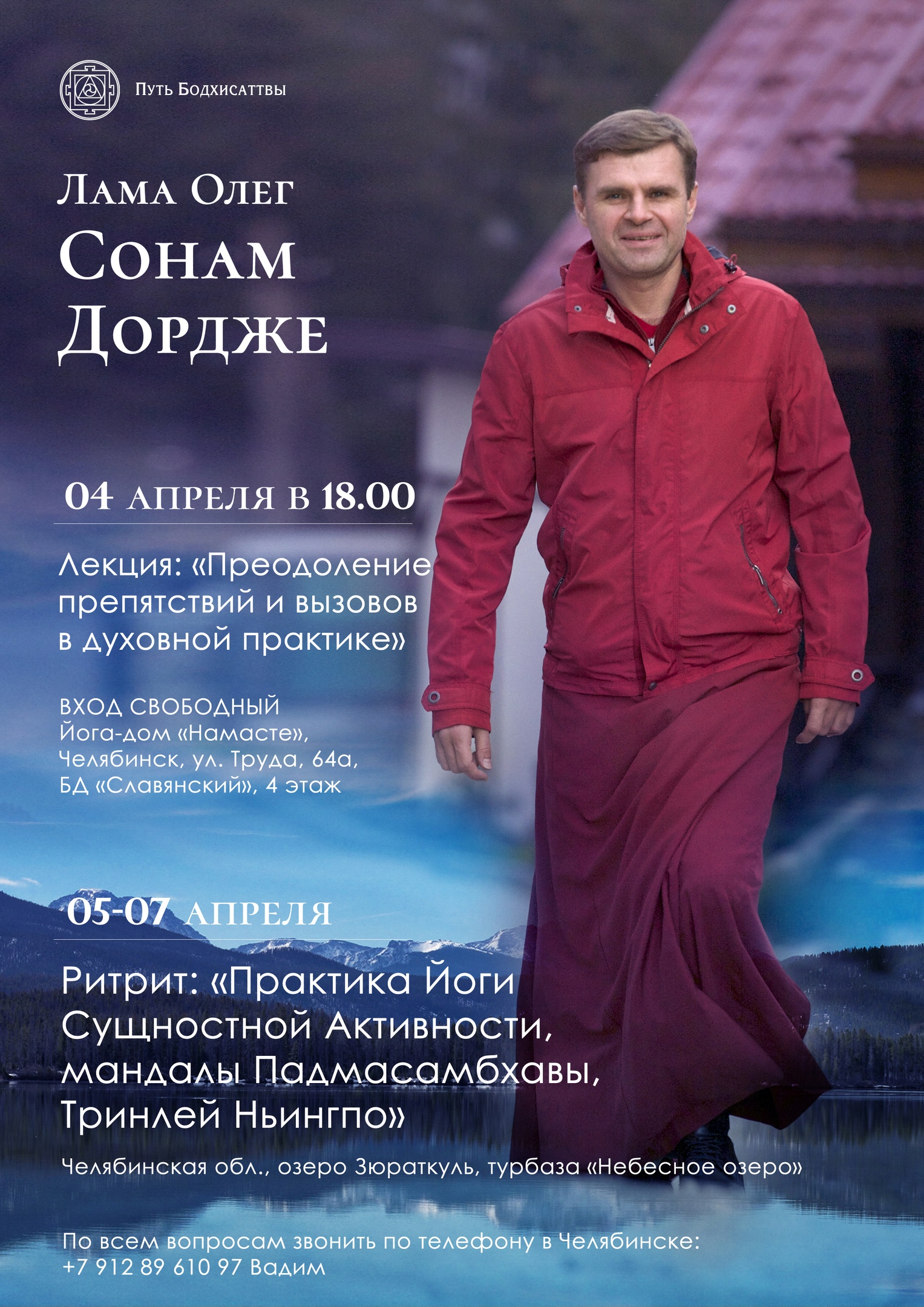 Лекции состоятся в центре йоги «Парам Ананд» по адресу: ул. Воровского, 21. yoga74paramanand.com. Контакты организаторов: +79128961097, vadimpitanie@mail.ru — Вадим.