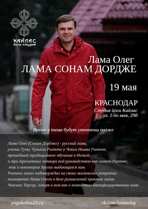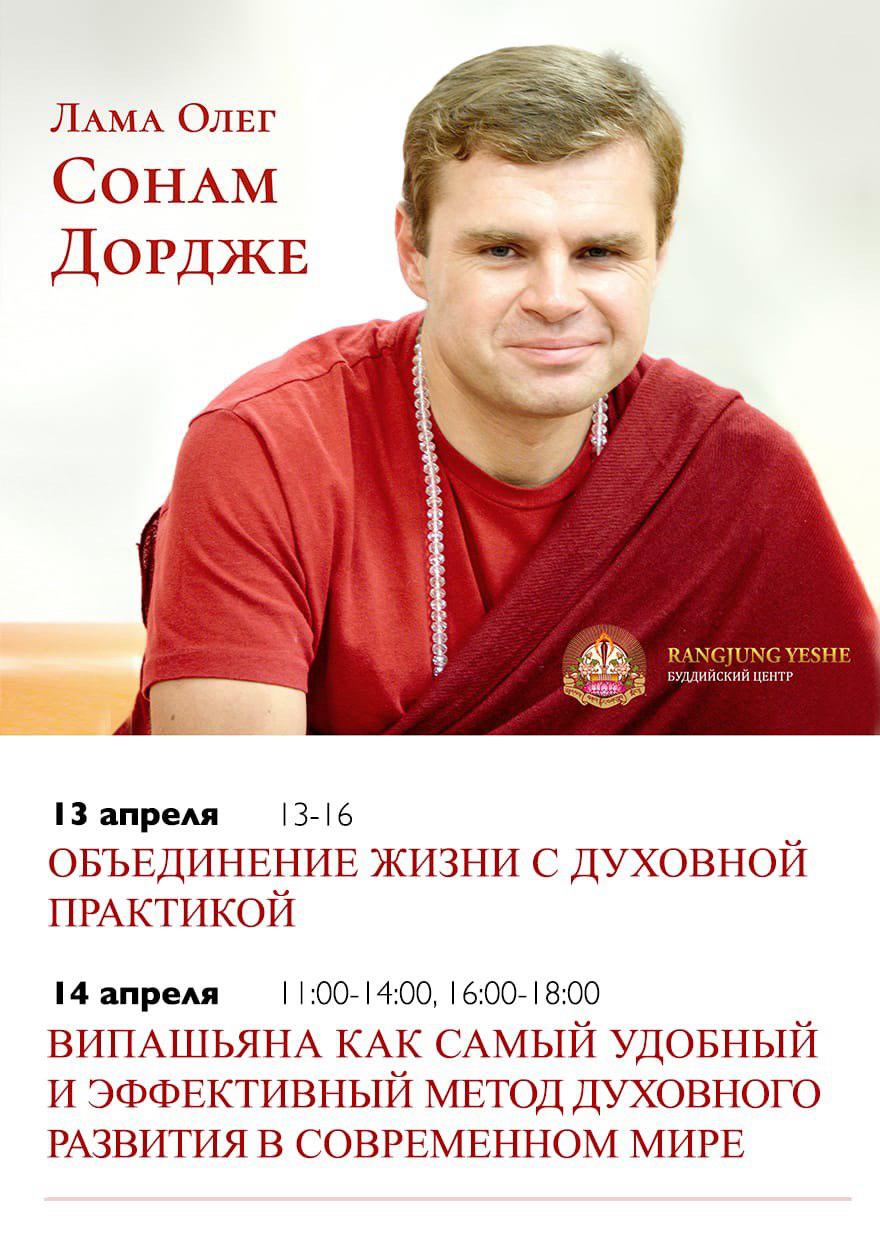 Лама Олег дарует учения на тему: «Возвращение к истокам», открытые для всех желающих. Во время учений будет возможность получить устную передачу (лунг) на садхану 12 эманаций Гуру Ринпоче — Тукдруб Тринлей Ньингпо. Стоимость участия — свободное подношение.