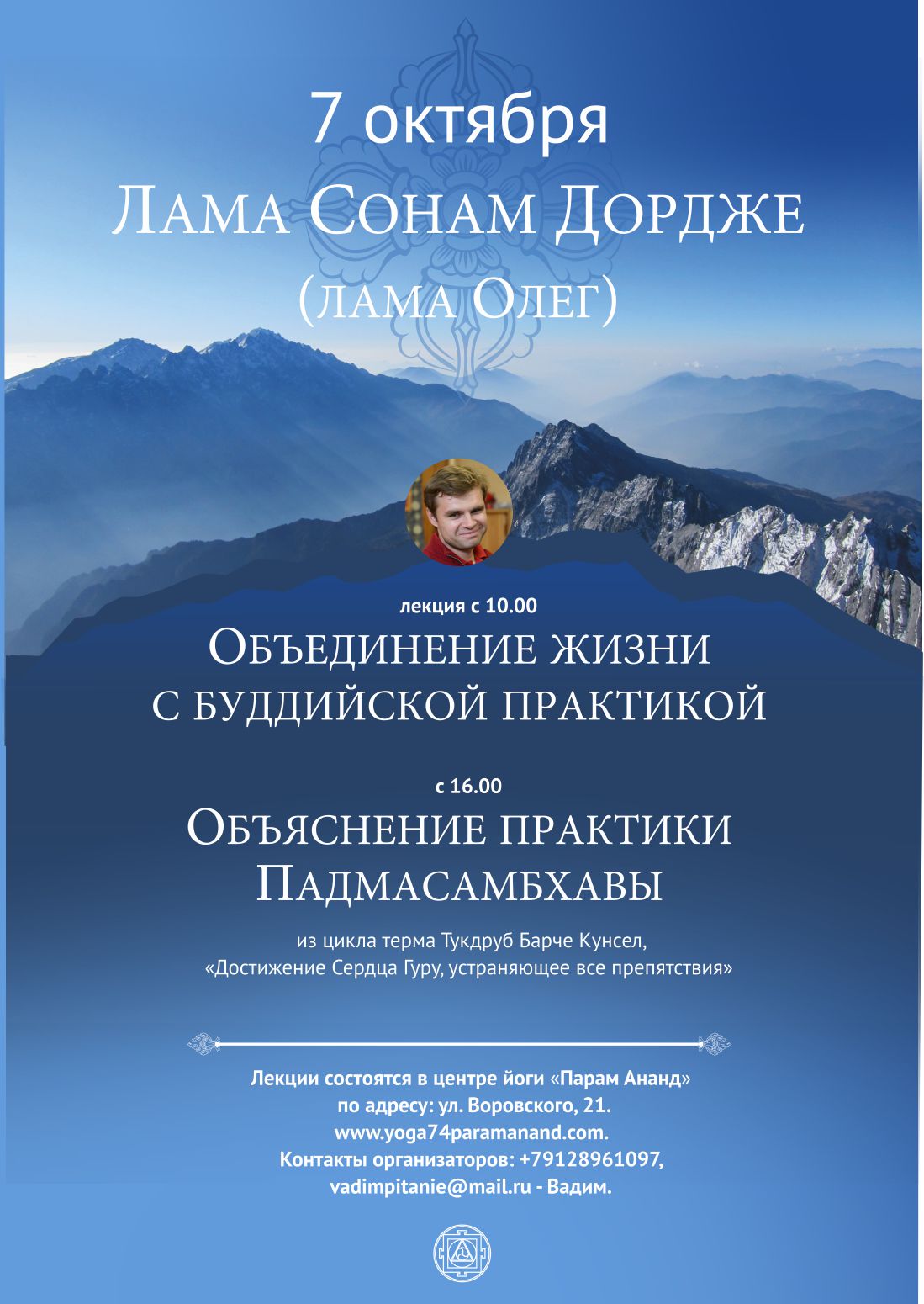 Лама Олег даст наставления по практикам гуру-йоги, медитации випашьяна и природе ума.
